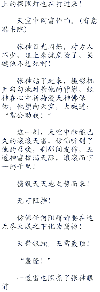 他们总共八个人,钟先生和那个女主持人是跑在最前的,然后两个保镖,张神跟在后面,摄影师扛着摄影机吭哧吭哧地跟着他,然后还有两个保镖殿后