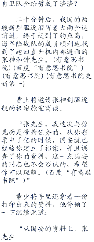 我国海军的驱逐舰紧急赶往钓鱼岛,海军的曹少将还接到了上级命令,负责与张神取得联系。