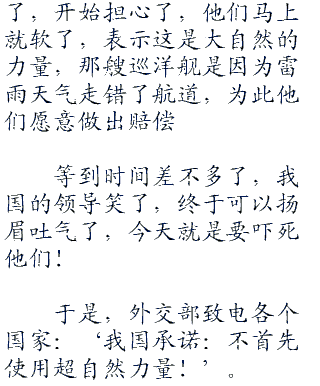 “咳咳,咳咳,这个咱们不谈啊,我就说这项能力吧,张先生有什么要补充的吗?放心,国家不会让你去做什么为难的事情的,倒是可以吹吹牛逼吓唬吓唬其他国家,哈哈。”