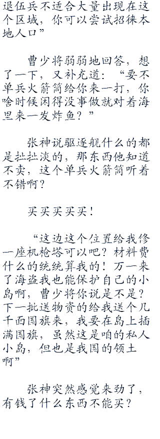 国家要扩充黄金储备,张神是支持的,要他捐给国家,那不是万万不可以的!这片海域的所有权现在是他私人的!