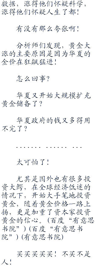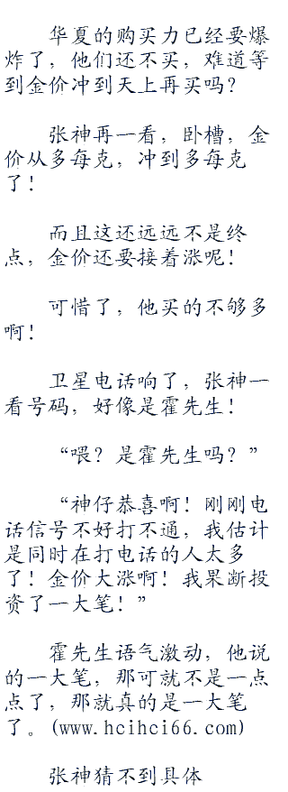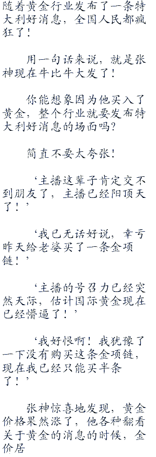张神买入黄金的时候,他们就知道黄金要涨,果然,国际黄金马上就发布了重大利好消息,黄金涨了!