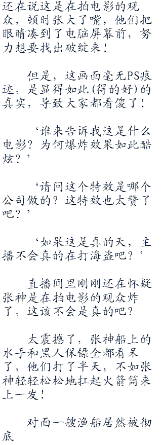 在整个斗鱼平台,有直播玩游戏的,有直播户外抓蛇的,根本就没有听说过有直播和海盗交火的!