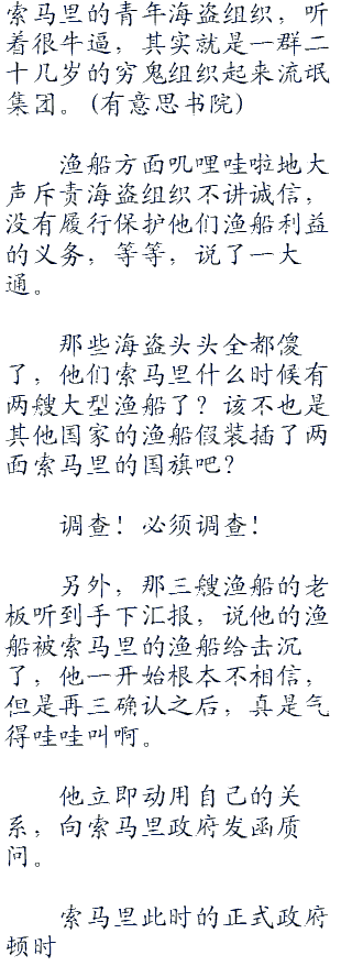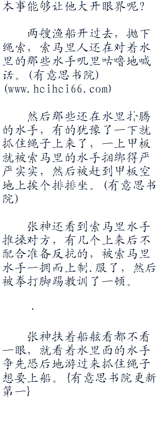 他赶紧向他的同胞们传达张神的意思,张神可以看到,甲板上的索马里水手一个个跃跃欲试。.首发