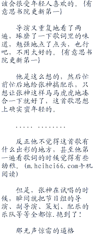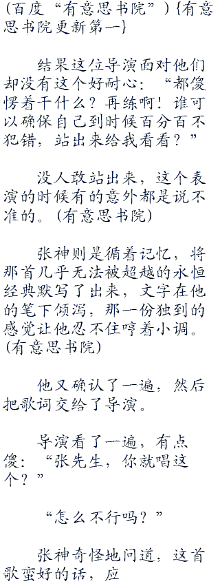 “张先生!可把你给盼来了!歌曲已经准备好了吗?歌词配乐等等都弄好了吗?”