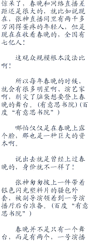 张神直播间的观众们还没有反应过来,主播刚刚还在陪他们抢红包抢得起劲,画风突变,这就要上节目了?