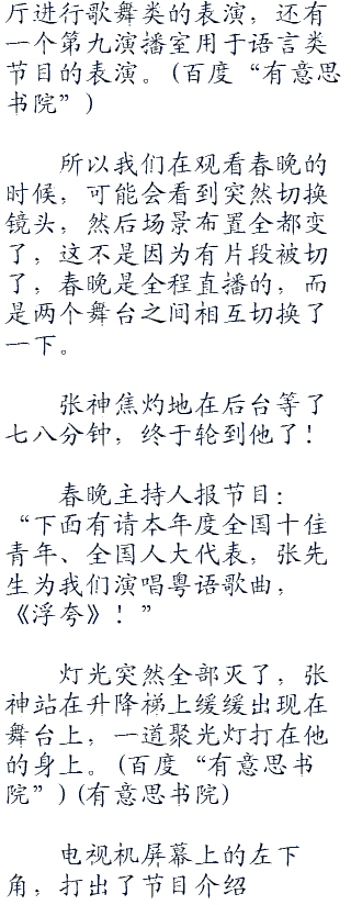 恰逢此时,春晚的一位副导演已经在找他了,马上就要轮到他了,要到对应舞台后面去准备。