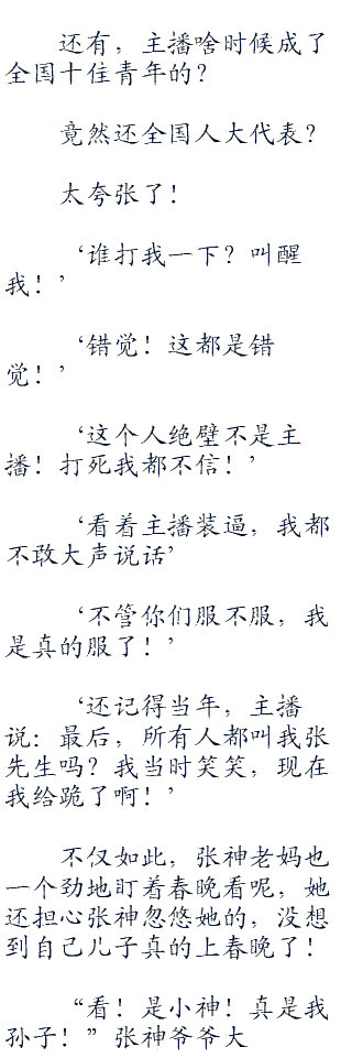 张妈妈坐不住了,春晚都开始了张神还不回来,赶紧给打个电话催一催。