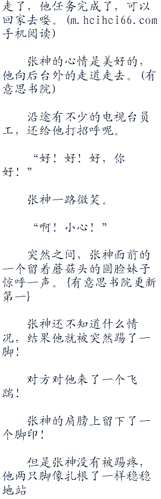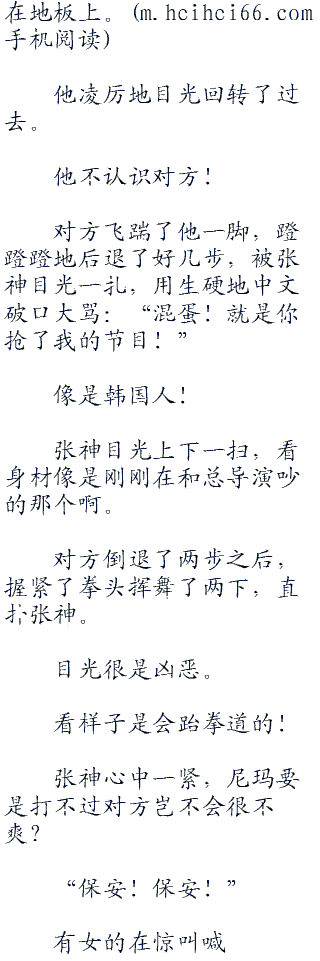 春晚后台,副导演把张神的手机递给张神,张神上台演唱的时候他帮忙保管,副导演是个光头,他夸奖道:“张先生!唱得真心好,特别的有感情!”