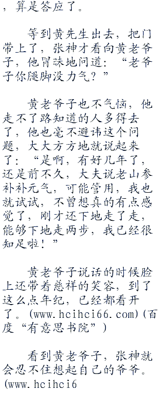 黄先生的父亲年纪应该比较大了吧,那半截老山参想必就是用在黄老爷子身上了。