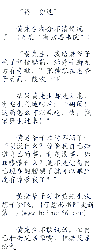 黄老爷子振奋地移动了一下身子,仿佛年轻了十岁一样。