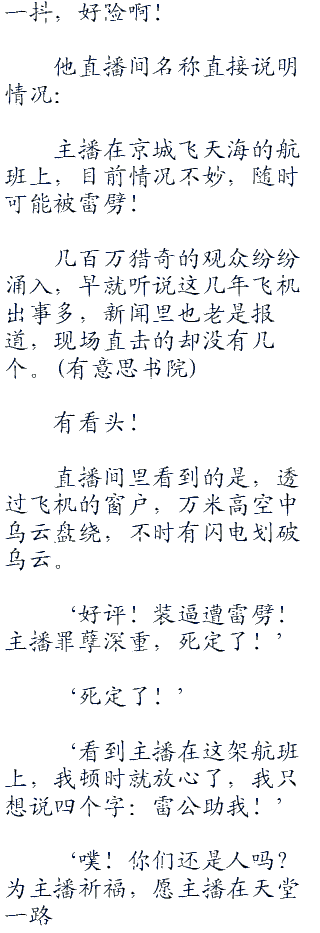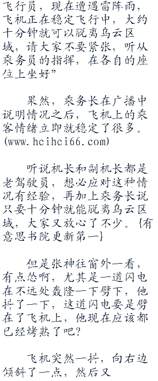 直到飞机飞过长江流域的时候,转瞬之间天色黯淡,突如起来的雷阵雨把张神都看傻了!
