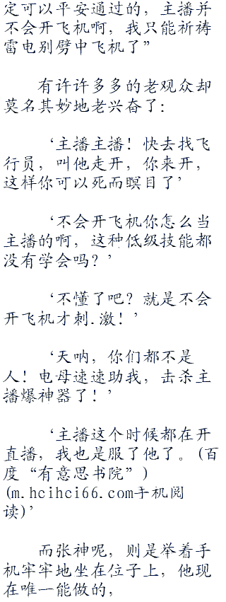 “电视机前的观众朋友们,下面插播一条刚刚收到的消息,一架从京城飞往天海市的编号为xxxxxx的客机在飞行途中不慎陷入雷云,此时情况非常危险,闪电非常的密集,客机随时有可能被闪电击中……”