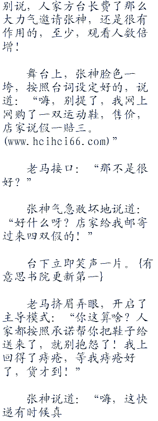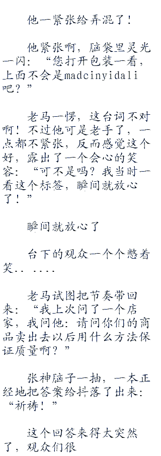 张神把台词又研究了一遍,这下放心了,肯定稳了,不就是说相声,看起来不难啊!