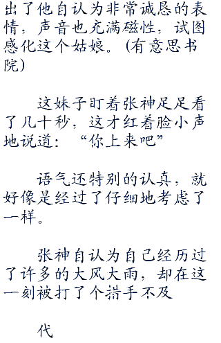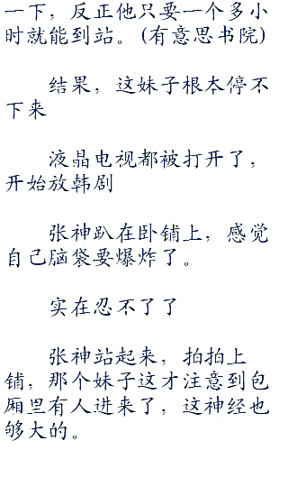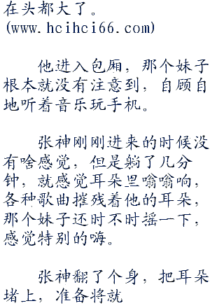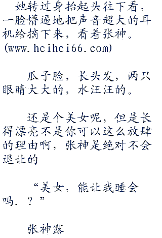 张神是从卫城高铁站中途上车的,他打开车厢的时候发现,发现三个卧铺都是空着的,只有他位子的上铺,有的穿淡绿色衣服的妹子在听音乐。
