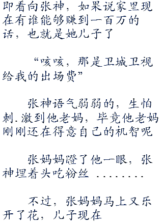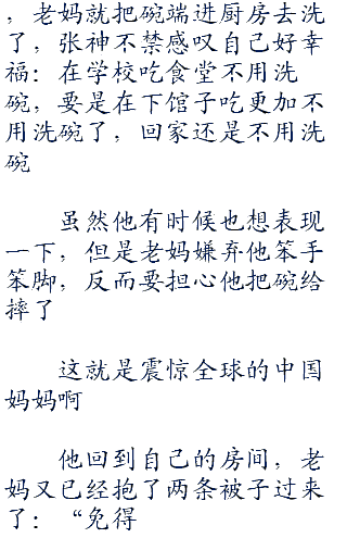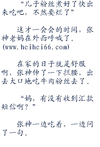 张神听老妈说给他煮粉丝吃,立刻就感觉肚子饿了,他问了一句:“是红薯粉丝吧?再给我撕两个面筋皮进去”