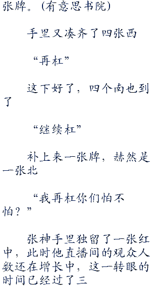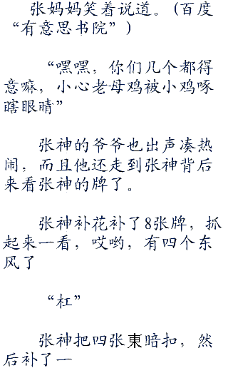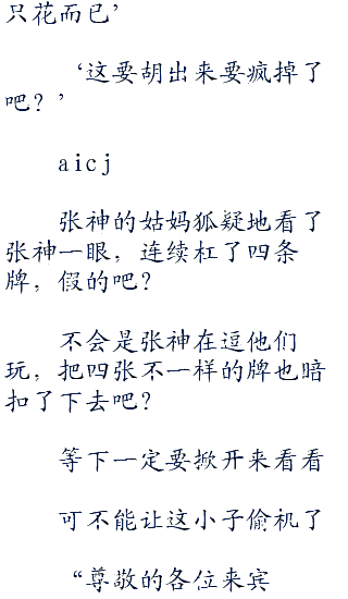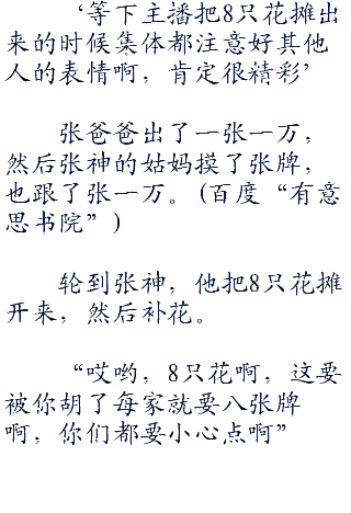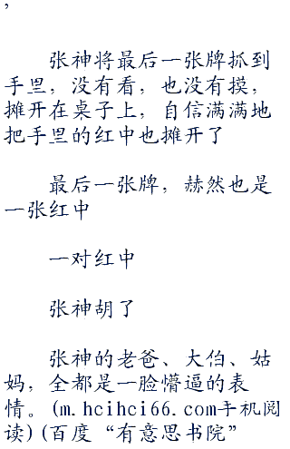 她目瞪口呆地看着张神的牌,又反复地看了一遍。
