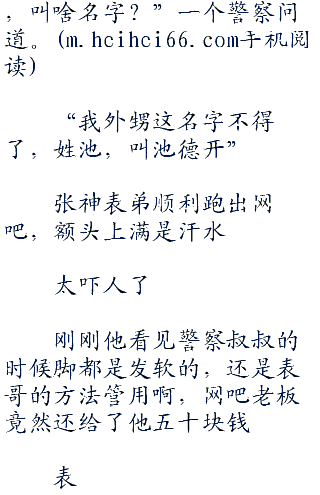 网吧一楼,老板正满头大汗地跟在两位警察同志后面,看他们挨个查对身份证呢。