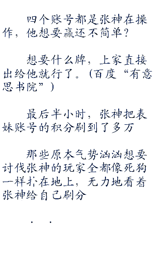 然后继续苦逼地看着自己输得只剩下两三千的分数,心里已经凉了一大截了